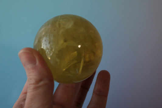 Lemon Quartz Sphere, medium sized quartz sphere, yellow, rainbows