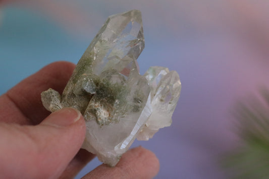Amplification & Clarity: Quartz crystals are powerful amplifiers of energy and intention. They enhance clarity of thought and aid in spiritual development. Quartz is universally beneficial, resonating with all zodiac signs. Quartz with inclusions only stand to amplify the energy of the included mineral. A beautiful collection of clear quartz crystals, hand selected by Jesi Lee.