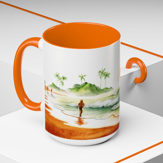 Surf-Inspired Accent Coffee Mug: Tropical Vibes, Beach Lover Gift, Summer Decor, Eco-Friendly, 11 & 15oz
