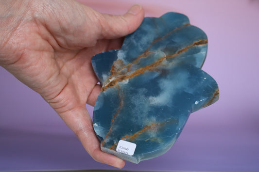 Aqua Lemurian Calcite - Blue Onyx Hamsa, polished shape