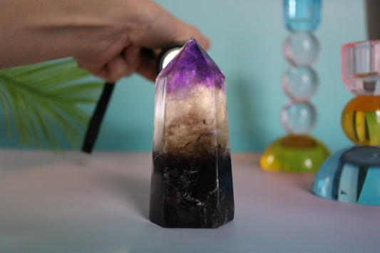 Sold outENHYDRO SMOKY QUARTZ AMETHYST TOWER