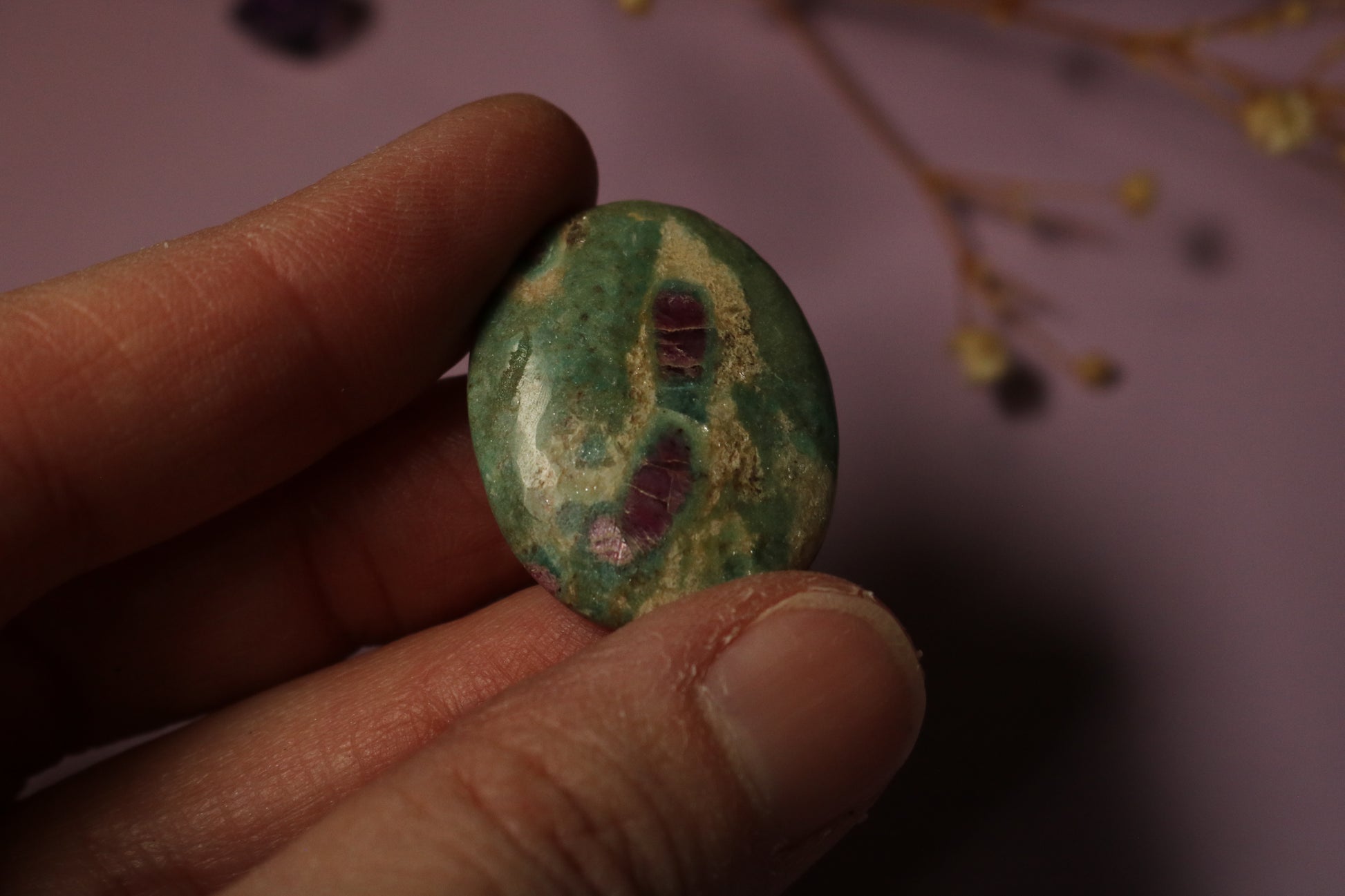 Ruby in Fuchsite blends the passion of ruby with the soothing energy of fuchsite, creating a stone that supports emotional healing and personal strength. Folklore suggests it was carried by healers to amplify empathy while protecting their heart from emotional exhaustion. It encourages self-worth, resilience, and the courage to love deeply without losing yourself. Mined mainly in India, this stone aligns the Heart and Root chakras, offering both grounding and emotional uplift.